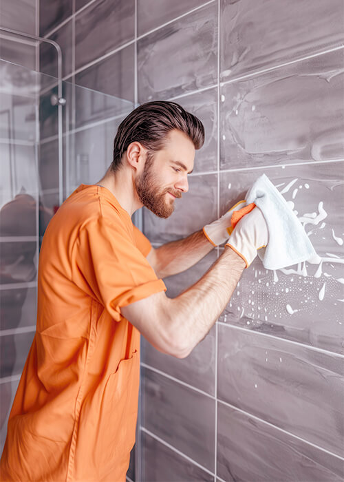 - Scrub bathtubs and showers, including tiles and grout.